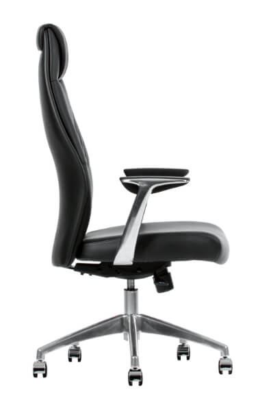 Silla de alta gama de respaldo alto y cabecera integrada al cuerpo principal, que conjuga diseño de líneas limpias, proporciona una inmejorable ergonomía al usuario y una geometría amigable. Especialmente diseñada para oficinas corporativas de alta dirección. Se puede aplicar también a salas de consejo o zonas de alta visibilidad como estudios de televisión, áreas de conferencias, zonas de convenciones. Su acabado en piel genuina en color negro ,le proporciona una elegancia única.
